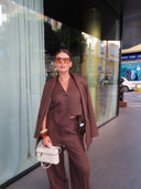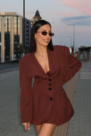 Сет Мока от вталено сако, тип рокля и панталонки/пола. Брънч в центъра или вечеря след работа? Това е идеалният аутфит за теб!