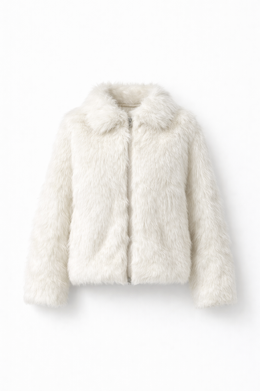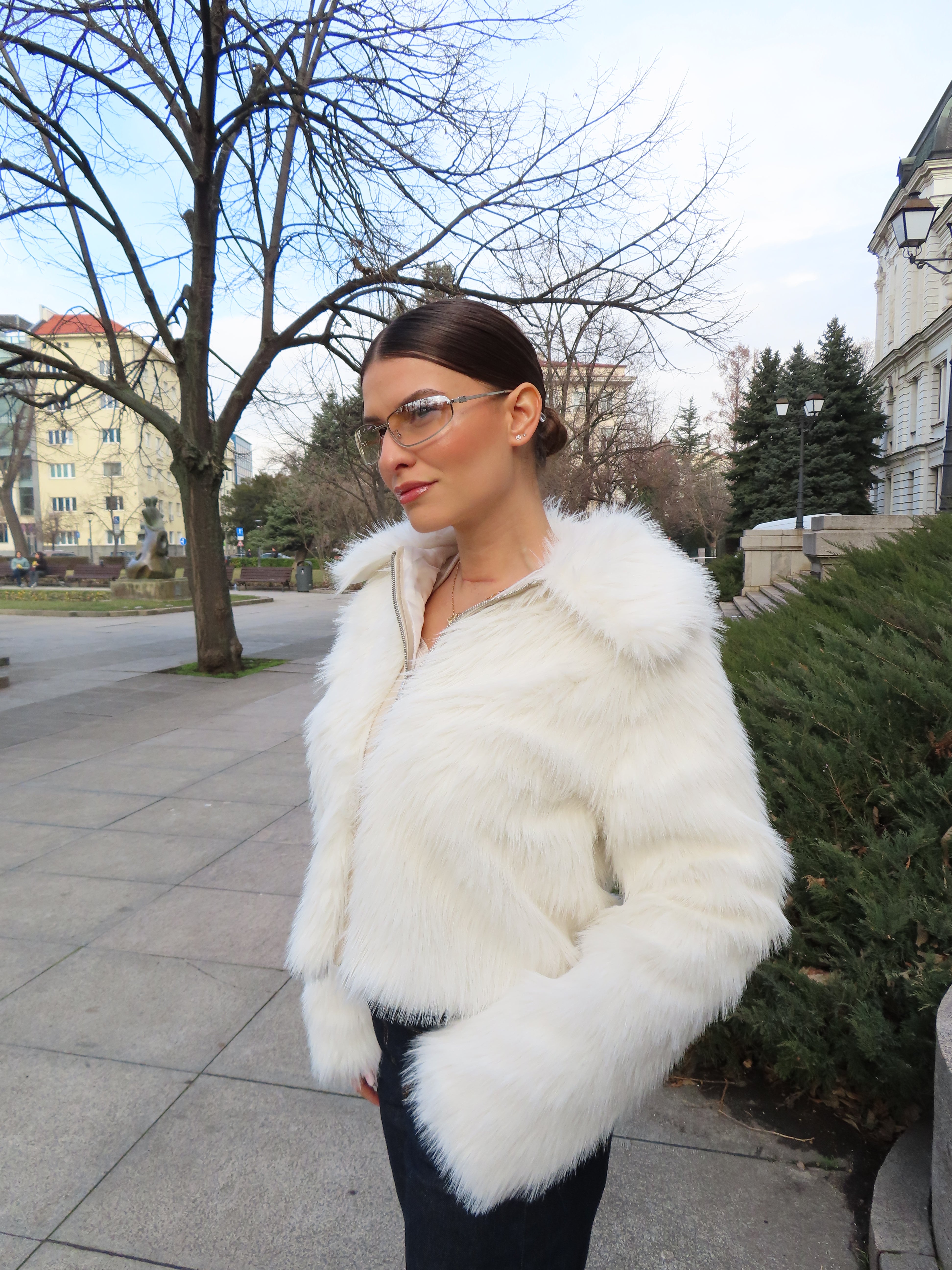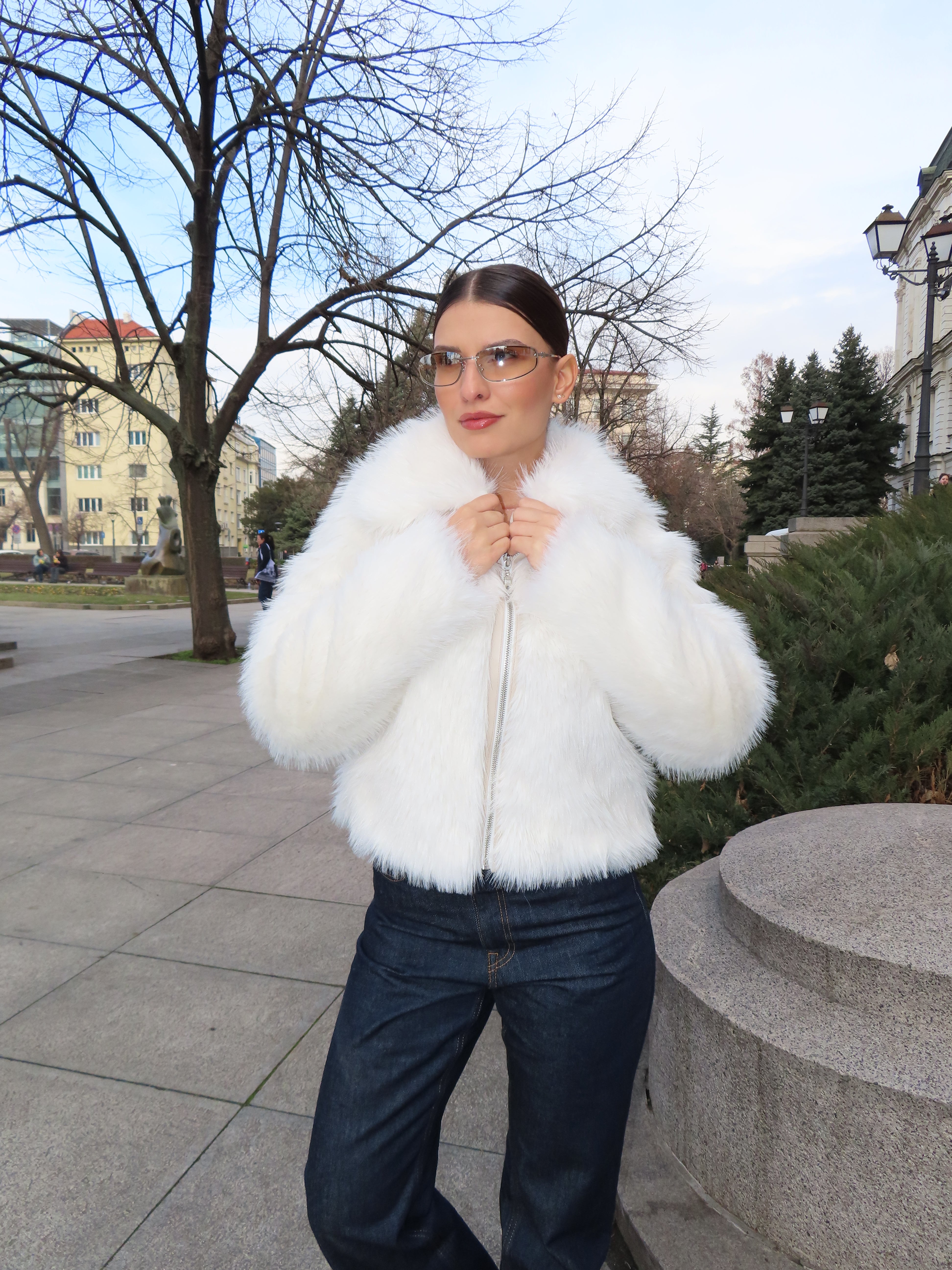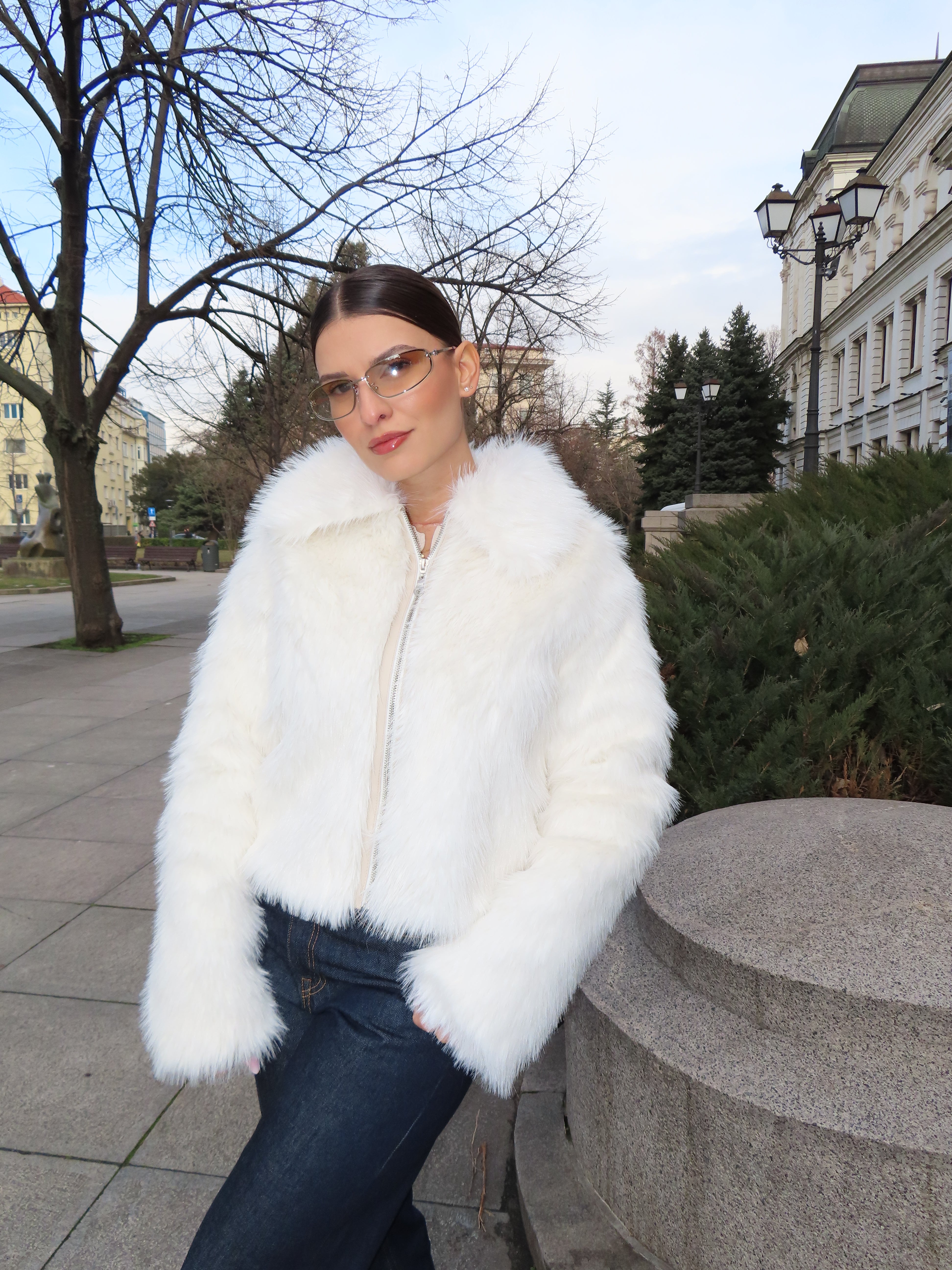 Палто Crème de Lait – късо палто от еко косъм в класическо снежно бяло