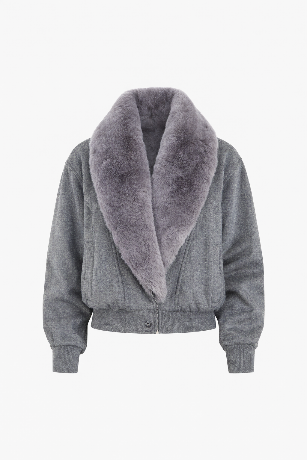 Палто “Minuit” – късо палто в сиво с обемна яка от еко кожа