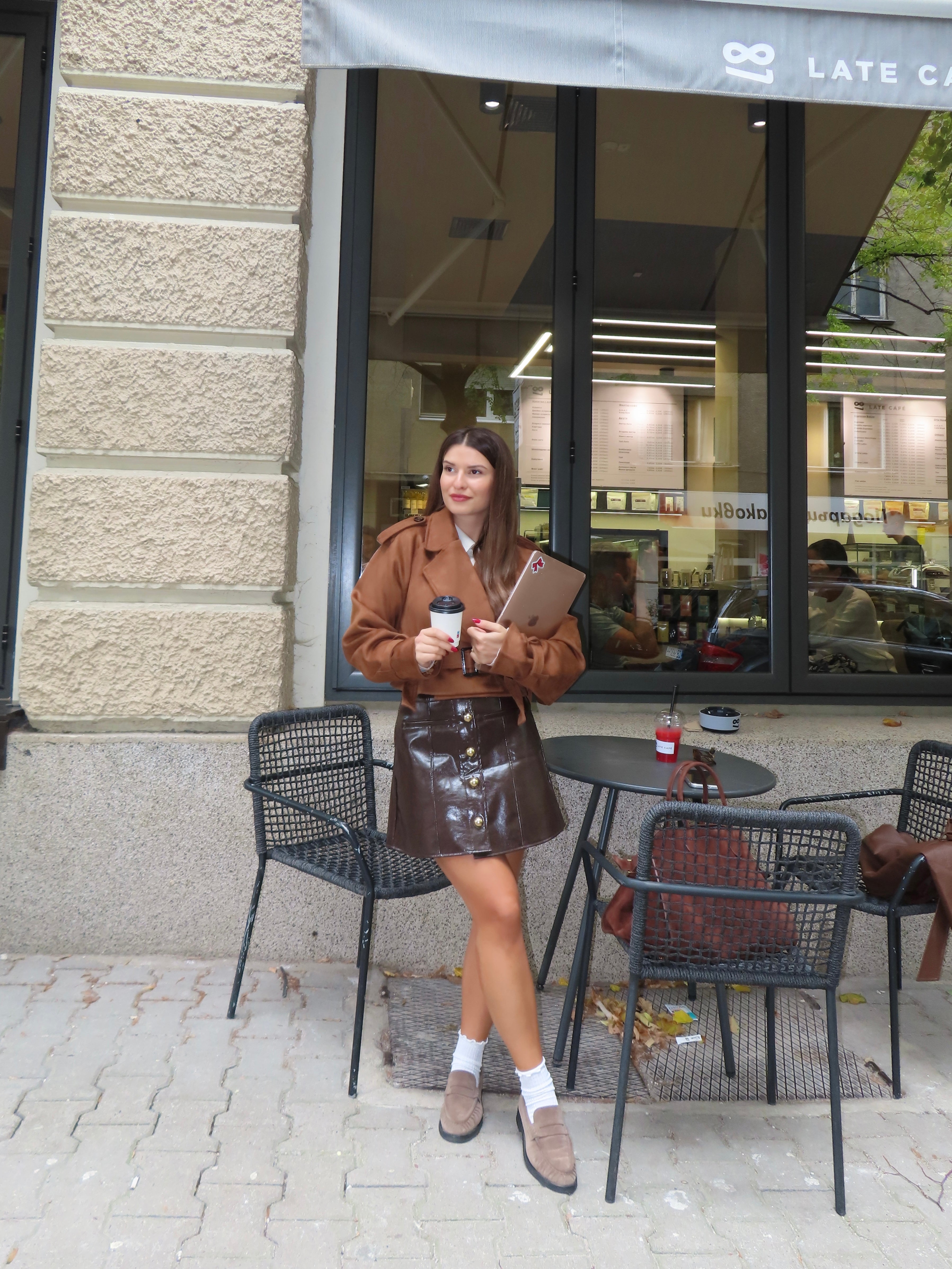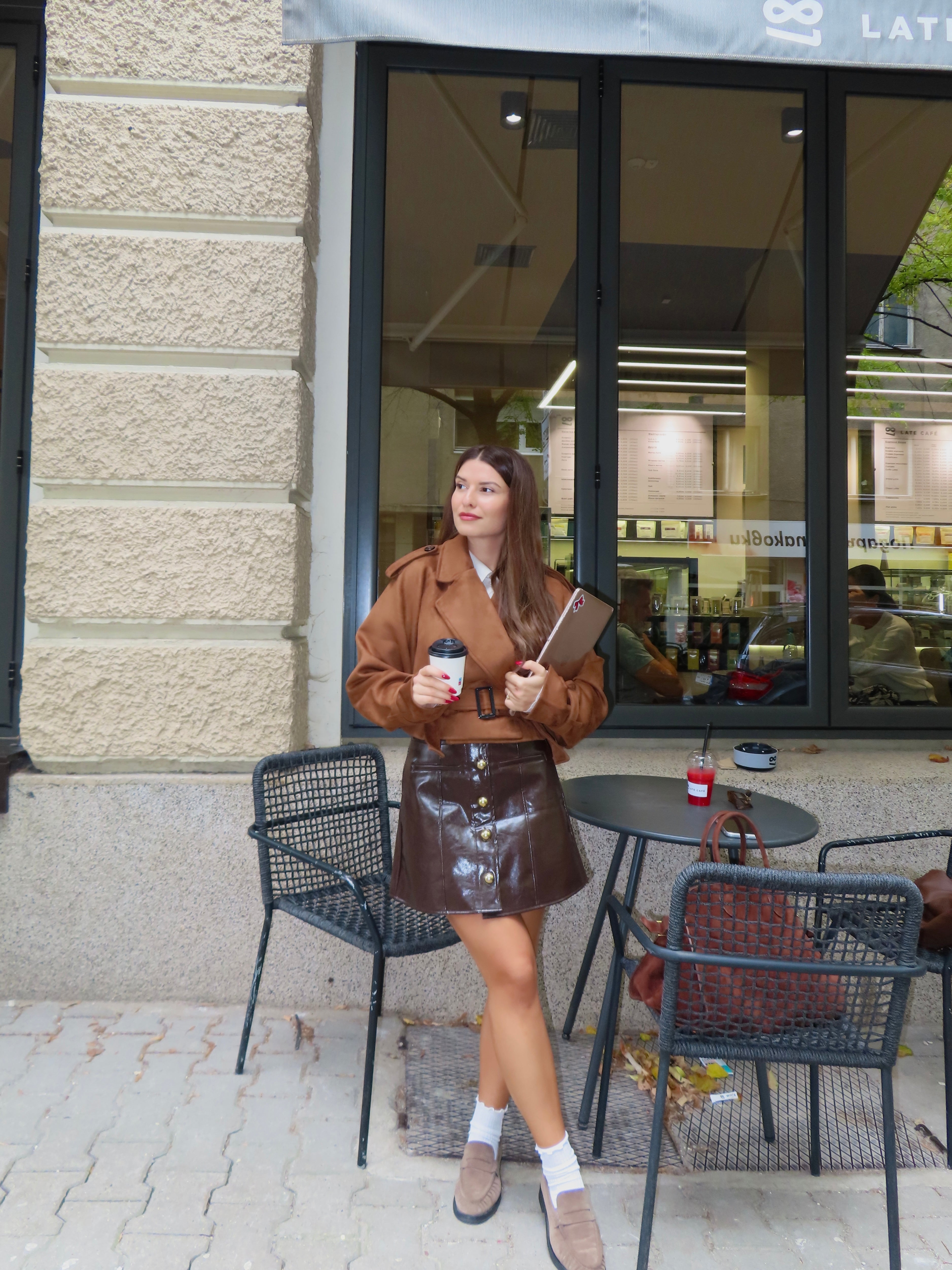 Комбинирай го с кожена пола, деним или широки панталони за изискано ежедневие. Идеално за офиса, срещи и есенни разходки в града.