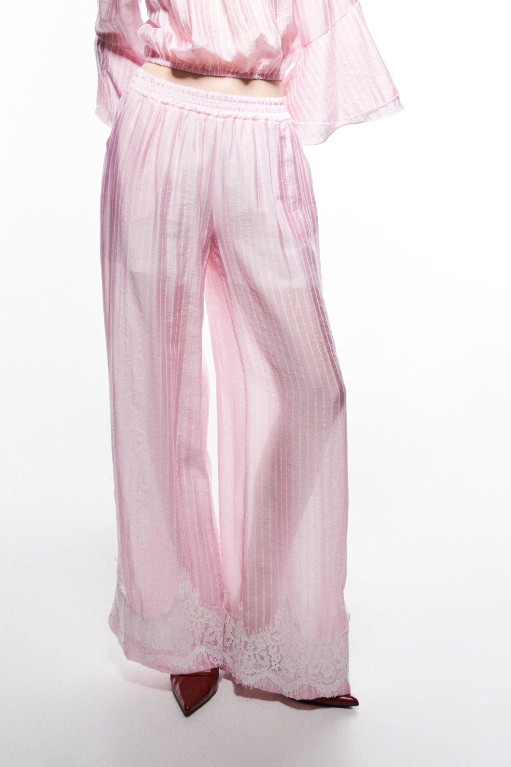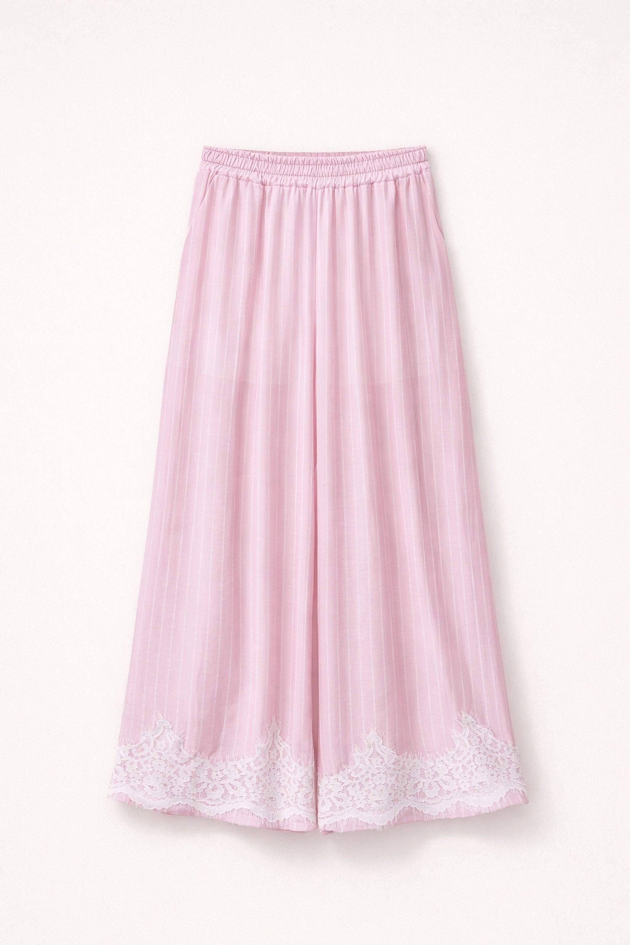 Опресняване на наличносттаПанталон “Rose Dentelle” – розов широк панталон с дантелен подгъв