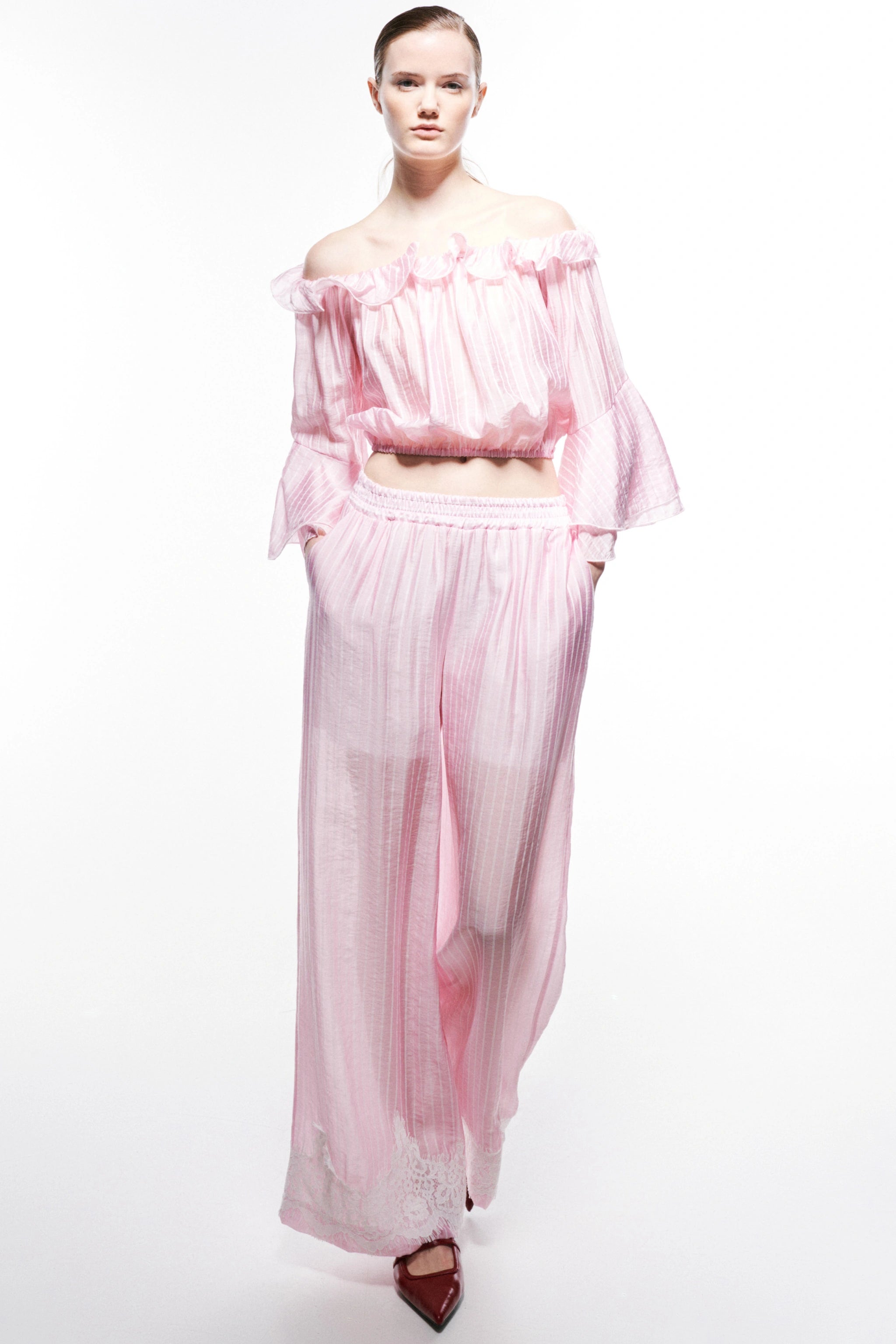 Rose Dentelle е панталон, който съчетава романтична нежност и модерна елегантност. Мекият розов нюанс, допълнен с фини вертикални линии, създава деликатно и женствено излъчване — свежо, леко и изключително стилно.